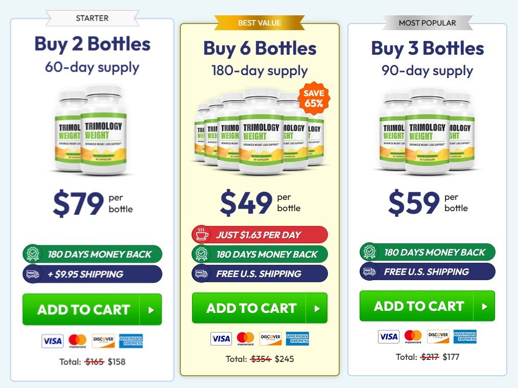 Currently, Trimology is backed by a 180-day money-back guarantee, giving you ample time to try it risk-free. Free shipping is also available on select multi-bottle packages, along with exclusive discounts for new customers.